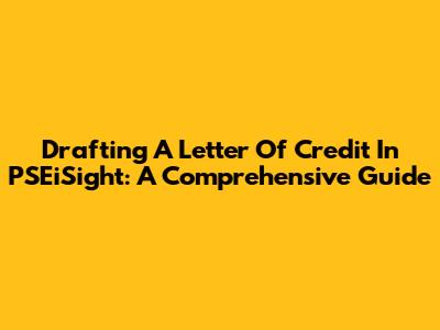 Drafting A Letter Of Credit In PSEiSight: A Comprehensive Guide