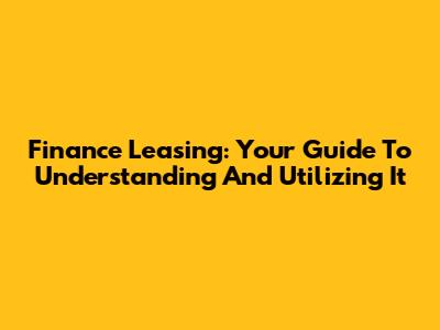 Finance Leasing: Your Guide To Understanding And Utilizing It