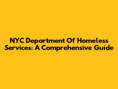 NYC Department Of Homeless Services: A Comprehensive Guide