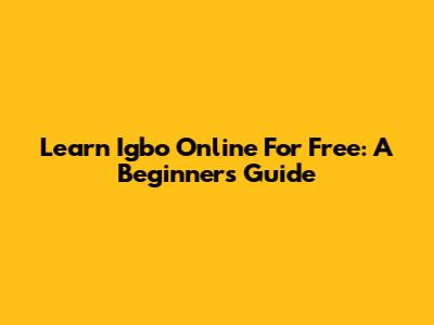 Learn Igbo Online For Free: A Beginner's Guide
