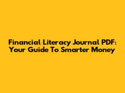 Financial Literacy Journal PDF: Your Guide To Smarter Money
