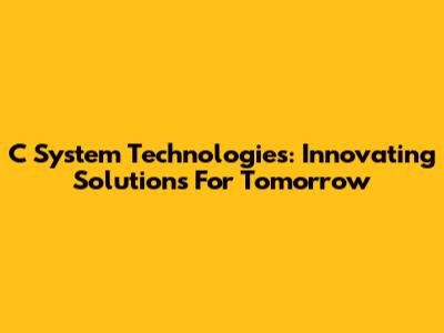 C System Technologies: Innovating Solutions For Tomorrow