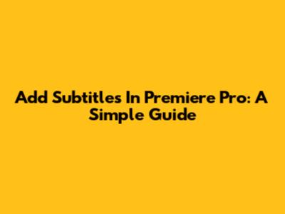 Add Subtitles In Premiere Pro: A Simple Guide