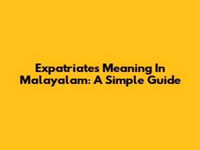 Expatriates Meaning In Malayalam: A Simple Guide