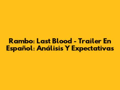 Rambo: Last Blood - Trailer En Español: Análisis Y Expectativas