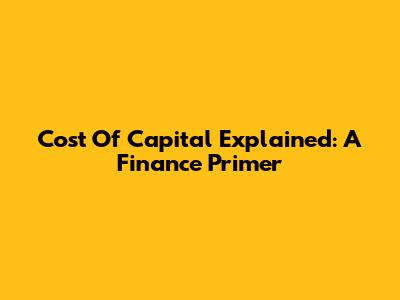 Cost Of Capital Explained: A Finance Primer