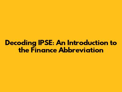Deep Dive: The Significance of IPSE in Finance