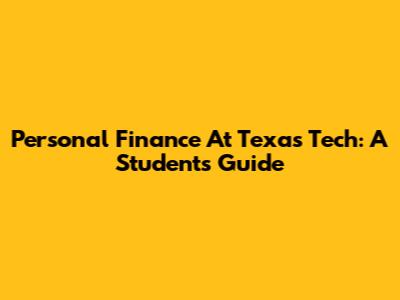 Personal Finance At Texas Tech: A Student's Guide