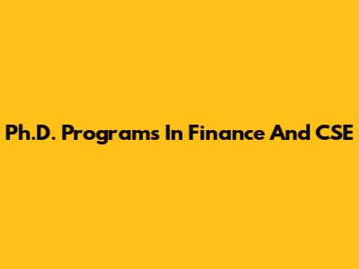 Ph.D. Programs In Finance And CSE
