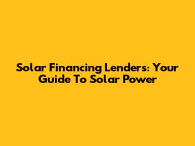 Solar Financing Lenders: Your Guide To Solar Power