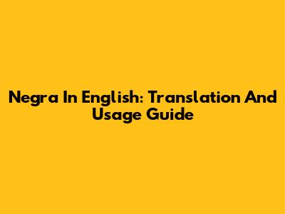 Negra In English: Translation And Usage Guide