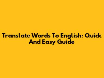 Translate Words To English: Quick And Easy Guide