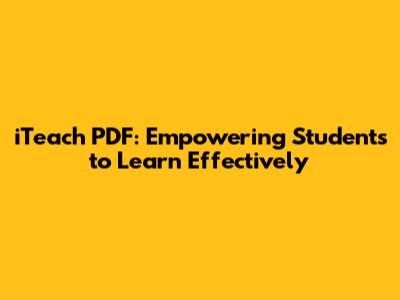 As mentioned throughout this article, the "iTeach: Teaching Students How to Learn" PDF is your primary resource. It contains detailed explanations, practical examples, and actionable strategies for implementing the iTeach method in your classroom. This PDF serves as a comprehensive guide for educators seeking to transform their teaching practices and empower students to become self-directed learners. Inside, you'll find a wealth of information on the core principles of iTeach, including active learning, critical thinking, self-regulation, and collaboration. The PDF also provides practical tips and strategies for implementing these principles in your classroom, along with real-world examples of how iTeach has been successfully used in various educational settings. Furthermore, the "iTeach: Teaching Students How to Learn" PDF offers guidance on assessing student learning and providing constructive feedback, both of which are essential for promoting student growth and achievement. The PDF also emphasizes the importance of creating a supportive and inclusive classroom environment, where students feel safe to take risks, ask questions, and share their ideas. Overall, the "iTeach: Teaching Students How to Learn" PDF is an indispensable resource for educators who are committed to empowering students to become lifelong learners.