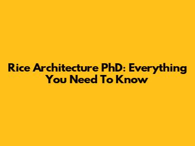 Rice Architecture PhD: Everything You Need To Know