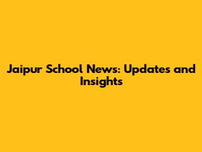 Jaipur School News: Updates And Insights