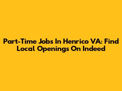 Part-Time Jobs In Henrico VA: Find Local Openings On Indeed