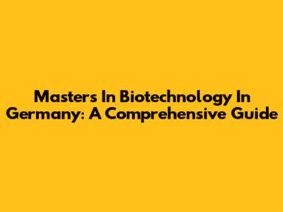 Master's In Biotechnology In Germany: A Comprehensive Guide