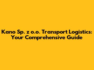 Kano Sp. Z O.o. Transport Logistics: Your Comprehensive Guide