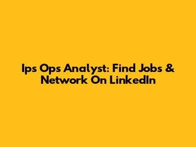 Ips Ops Analyst: Find Jobs & Network On LinkedIn