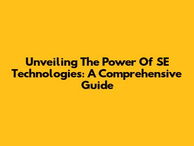Unveiling The Power Of SE Technologies: A Comprehensive Guide