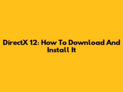 DirectX 12: How To Download And Install It
