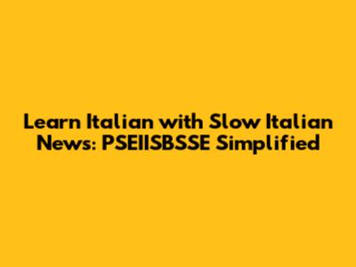How to Get Started with PSEIISBSSE News in Slow Italian