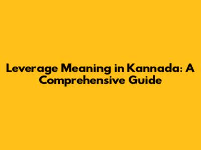 Hey guys! Ever wondered how to say "leverage" in Kannada? Or maybe you're just curious about what the word means in different contexts? Well, you've come to the right place! In this article, we're diving deep into the world of "leverage" and exploring its various Kannada translations and applications. So, buckle up and get ready to expand your linguistic horizons!