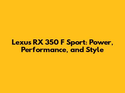 Lexus RX 350 F Sport: Power, Performance, And Style
