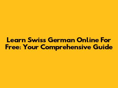 Learn Swiss German Online For Free: Your Comprehensive Guide