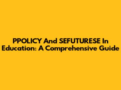 PPOLICY And SEFUTURESE In Education: A Comprehensive Guide