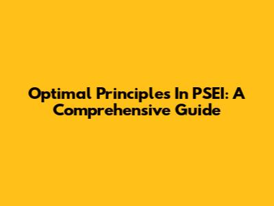 Optimal Principles In PSEI: A Comprehensive Guide