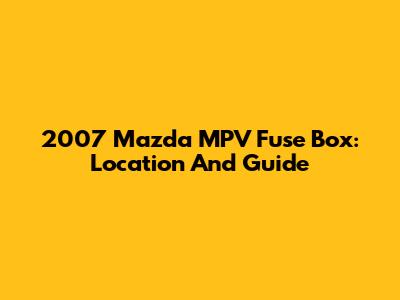 2007 Mazda MPV Fuse Box: Location And Guide