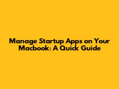Managing startup apps is a simple yet powerful way to optimize your Macbook's performance. By following these steps, you can ensure that your Mac boots up quickly, runs smoothly, and conserves battery life. So go ahead, take control of your startup apps and enjoy a faster, more efficient Mac experience! You've got this! Optimizing your Macbook's performance through effective management of startup apps is a straightforward process that yields significant benefits. By carefully curating the list of applications that launch automatically when you turn on your Mac, you can enhance your system's boot time, improve its overall performance, and conserve battery life. Disabling unnecessary startup programs prevents them from consuming valuable system resources in the background, allowing your Macbook to run more efficiently and respond more quickly to your commands. This is especially important for users who rely on their Macbooks for demanding tasks such as video editing, graphic design, or software development. A streamlined startup process ensures that these applications receive the resources they need to perform optimally, resulting in smoother workflows and faster completion times. In addition to performance benefits, managing startup apps can also extend your Macbook's battery life. When fewer applications are running in the background, your system consumes less power, allowing you to work or play for longer periods without needing to recharge. This is particularly valuable for users who are frequently on the go and rely on their Macbooks for productivity and entertainment. By taking the time to review and manage your startup apps, you can create a more efficient and enjoyable computing experience. A faster boot time means less waiting around, while improved performance translates to smoother multitasking and more responsive applications. And with extended battery life, you can stay productive and entertained for longer, without worrying about running out of power. So, take control of your startup apps today and unlock the full potential of your Macbook. With just a few simple steps, you can transform your Mac into a lean, mean, computing machine that's ready to tackle any task you throw its way. Enjoy a faster, more efficient, and more enjoyable Mac experience, and take pride in knowing that you've optimized your system for peak performance.