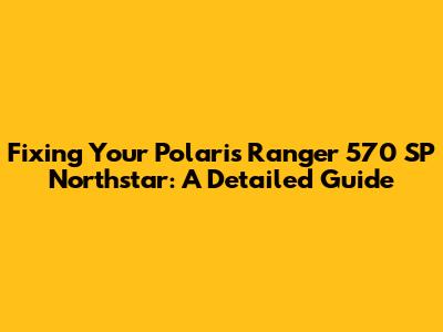 Fixing Your Polaris Ranger 570 SP Northstar: A Detailed Guide