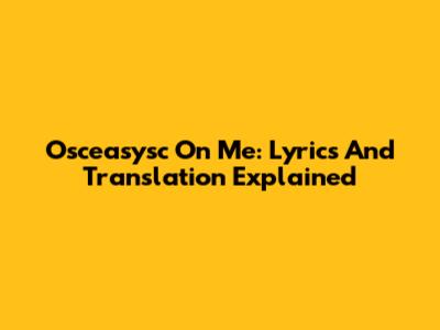 Osceasysc On Me: Lyrics And Translation Explained