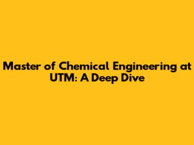 Hey guys! Thinking about taking your chemical engineering career to the next level? Well, let's dive deep into the Master of Chemical Engineering program at Universiti Teknologi Malaysia (UTM). This program is pretty popular, and for good reason. We're going to break down everything you need to know, from the curriculum and faculty to the application process and career prospects. So, buckle up, and let's get started!