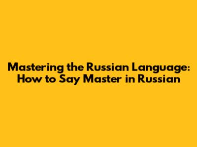 Exploring Other Ways to Say "Master" in Russian