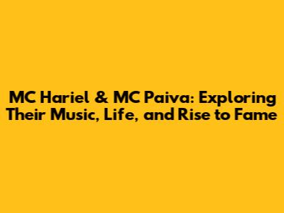 Hey music lovers! Ever wondered about the dynamic duo shaking up the Brazilian funk scene? We're diving deep into the world of MC Hariel and MC Paiva, two artists whose music and lives have captivated a massive audience. Get ready for a journey through their hits, personal stories, and the cultural impact they've made. Let's explore everything from their chart-topping tracks to the personal philosophies that drive them. If you're looking to understand the core of their appeal, you're in the right place.