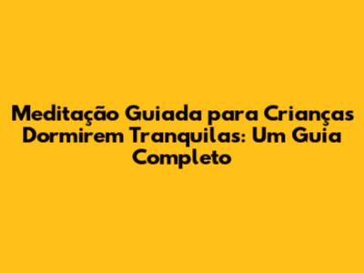Meditação Guiada Para Crianças Dormirem Tranquilas