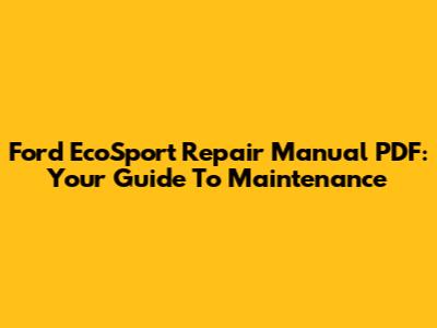 Ford EcoSport Repair Manual PDF: Your Guide To Maintenance