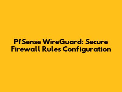 PfSense WireGuard: Secure Firewall Rules Configuration