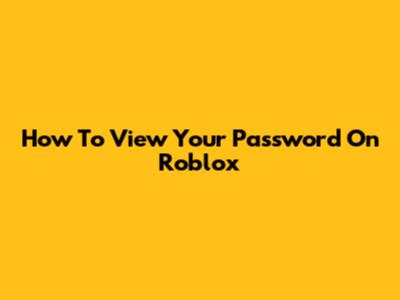 How To View Your Password On Roblox