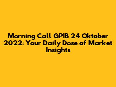 Hey guys! Get ready for your daily market briefing! Today, we're diving deep into the Morning Call GPIB for October 24, 2022. This isn't just some dry report; it's your insider's guide to navigating the market landscape. We'll break down the key insights, highlight potential opportunities, and help you make informed decisions. So, grab your coffee, settle in, and let's get started!