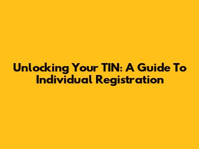 Unlocking Your TIN: A Guide To Individual Registration