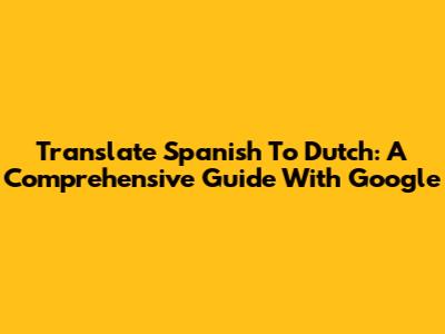 Translate Spanish To Dutch: A Comprehensive Guide With Google
