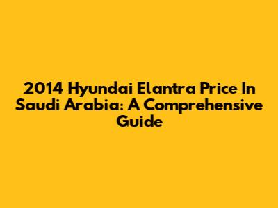 2014 Hyundai Elantra Price In Saudi Arabia: A Comprehensive Guide