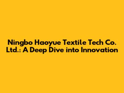 Hey everyone, let's dive into Ningbo Haoyue Textile Tech Co. Ltd., a company that's making waves in the textile industry. We're going to explore what makes them tick, their innovative approach, and what this all means for you. So, grab a coffee (or your beverage of choice), and let's get started. The textile industry is constantly evolving, with new technologies and trends emerging all the time. Ningbo Haoyue Textile Tech Co. Ltd. is at the forefront of these changes, and they're doing some pretty cool stuff. They're not just another textile company; they are a hub of innovation, pushing boundaries and setting new standards. This article will break down what makes them stand out, from their product offerings to their commitment to quality and sustainability. We'll explore their history, their mission, and the impact they're making on the industry. Furthermore, we will talk about their products and how they meet market needs, and what are their commitment to customer satisfaction. We'll also cover their sustainability practices and overall company culture, giving you a well-rounded view of Ningbo Haoyue Textile Tech Co. Ltd.