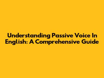 Understanding Passive Voice In English: A Comprehensive Guide