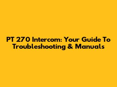 PT 270 Intercom: Your Guide To Troubleshooting & Manuals