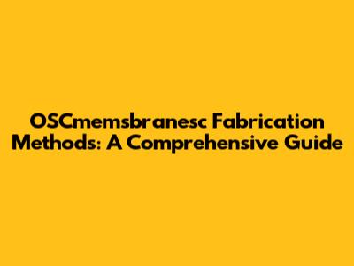 OSCmemsbranesc Fabrication Methods: A Comprehensive Guide